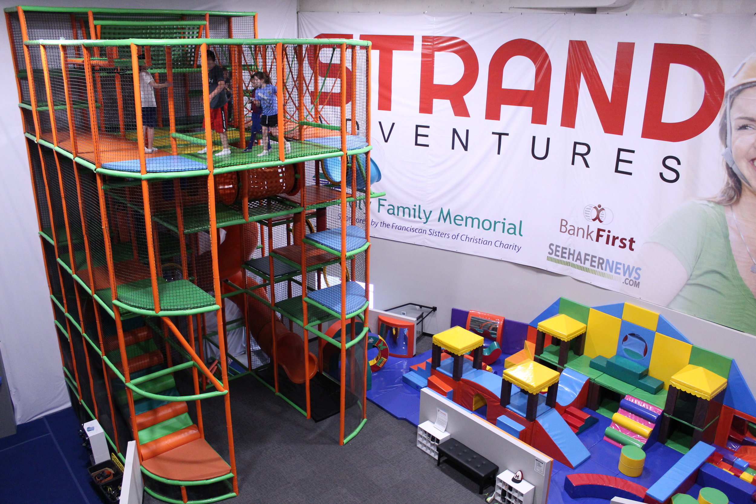 Strand Adventures is a broad indoor entertainment venue rather than a simple playground, with active attractions that include a ninja gym, themed climbing wall, jungle gym, arcade, and toddler-friendly spaces. Families can make it a quick high-energy stop or build a longer outing around multiple attractions. It is one of the better choices in Manitowoc for siblings with different ages and play styles.